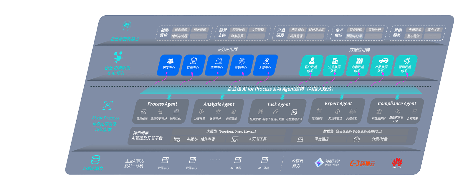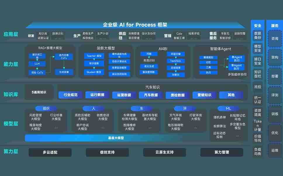 GOWIN问学智车解决方案是一套基于AI技术的汽车行业智能化系统,,,覆盖从底层算力到顶层AI应用的全栈方案。。方案由算力层、、、、模型层和应用层组成:算力层,,方案支持多种一体机配置,,具备云端灵活部署、、、多云适配以及动态优化计算资源的能力;模型层,,GOWIN问学平台版提供了企业级AI应用一站式构建与管理平台,,,支持基于后训练强化技术的汽车企业专属模型的训练、、、评测和运营;应用层,,,,GOWIN问学DeepSeek版提供包括超级员工、、、、智能招采、、、、智能营销、、智能客服、、AI for BI等一系列解决方案,,,,可助力汽车行业实现数字化转型,,,让管理更智能、、、、响应更敏捷。。